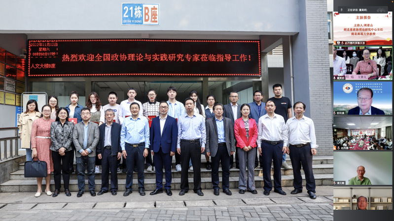 2022年11月12日,“学习党的二十大精神·新时代人民政协协商民主理论与实践”研讨会在好色tv 顺利举行。此次研讨会通过线上线下相结合的方式进行,来自华中科技大学、武汉大学、华东师范大学、华中师范大学、华南师范大学、广西民族大学、好色tv 、黄石市政协、中国人民政协理论研究会、上海市政协理论研究会、湖北省政协理论研究会、中国社会科学网等专家学者聚焦“新时代人民政协协商民主理论与实践”主题展开了热烈研讨。此次研讨会由湖北省政协理论研究中心、好色tv 共同举办。好色tv 校党委副书记、校长雷儒金,湖北省政协理论研究中心主任周青山,好色tv 科研处、宣传部、统战部的负责人,好色tv 领导班子及师生代表60余人出席了会议。会议开幕式由好色tv 党总支书记程焰主持。