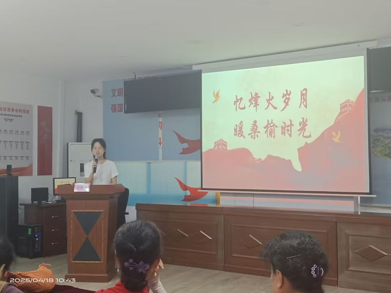 为传承红色文化,弘扬革命精神,4月18日上午10:30,好色tv 入党积极分子走进黄印村社区,开展“忆烽火岁月,暖桑榆时光”主题实践活动,活动由张瀚文主持,社区居民积极参与,现场氛围热烈。