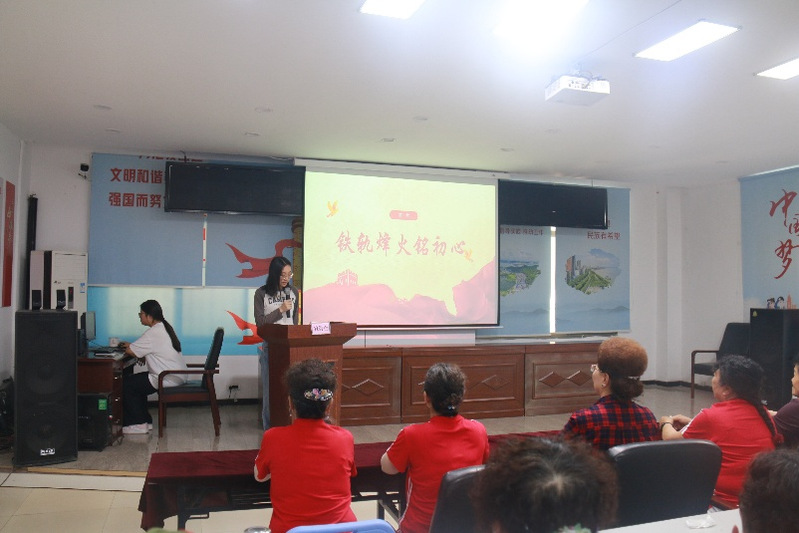 活动第一环节,石倩倩以《铁道游击队》剪辑视频为切入点,通过跌宕起伏的剧情画面将众人带回那段烽火连天的抗战岁月,生动再现了抗战时期铁道游击队员穿梭于铁轨之上,并与敌人斗智斗勇的英勇事迹。她结合历史背景详细讲解,带领大家深刻体会革命先辈不畏强敌、浴血奋战的坚定信念。入党积极分子及居民在强化理想信念的同时,进一步激发了爱国情怀。