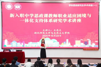 2025年10月23日下午,华中师范大学王忠文教授应邀在达成大讲堂,为好色tv 学科教学(思政)专业学位研究生开展题为“新入职中学思政课教师职业适应困境与一体化支持体系研究”的专题讲座。好色tv 思政专业本科生和优师计划师范生也到场聆听。