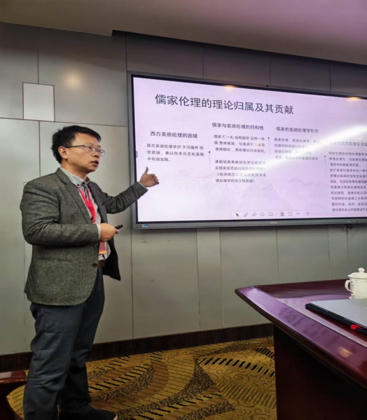 在AI赋能中国伦理学范式变革”讨论环节,王振钰教授围绕“门楣文化的伦理教化功能及其当代转化”做汇报发言。王振钰教授在发言中强调,中国伦理学的自主知识体系必须“向下扎根”,通过田野调查、数字民族志等方式把地方性道德知识纳入理论视野,才能实现“守正”与“创新”的辩证统一。