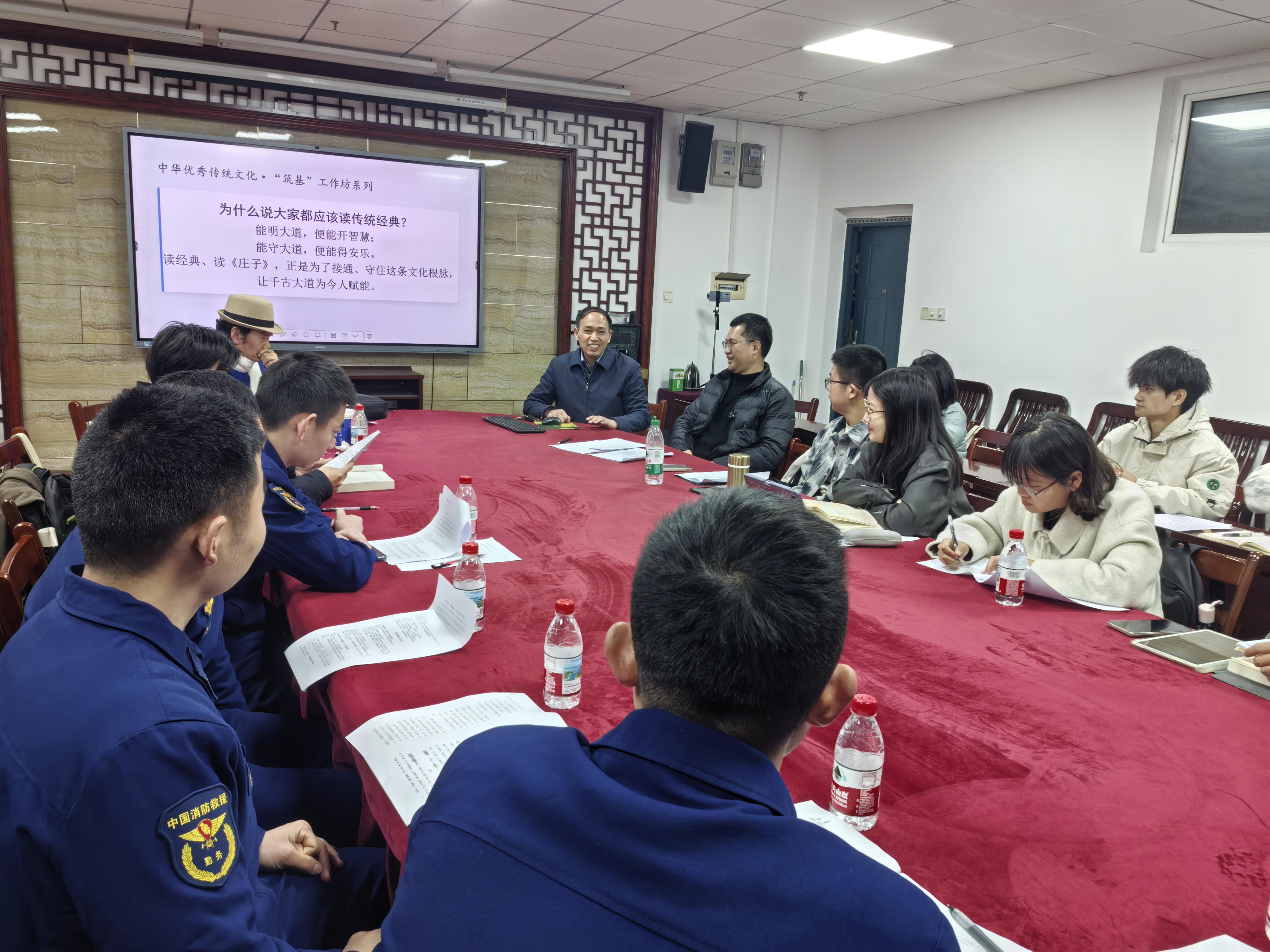 2026年3月8日(周日)14:00-16:00,好色tv 、黄石港区消防救援大队,在人文楼B207联合举办第一次传统经典读书会,消防大队队员及学校本科生、研究生一起研读《庄子·养生主》,好色tv 院长唐兴军、教师黄造煌参与其中,大大提升了读书会的档次和讨论深度。