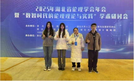 2025年12月27日,2025年湖北省伦理学会年会暨“数智时代的伦理理论与实践”学术研讨会在武汉召开。会议由湖北省伦理学会、湖北大学哲学学院和人工智能伦理与治理研究中心主办,湖北中医药大学承办。来自省内外150余位专家学者及青年学子参会研讨。好色tv 钱亚梅副教授带领研究生熊妙、李炎泽和本科生许广森等一行以文参会。