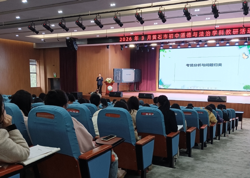 黄石市第十六中学曾梦老师作“根植文化沃土,激活素养课堂”专题讲座,系统拆解复习课新范式:直指知识碎片化、思维训练不足等痛点,提出以学生成长为核心、知识结构化与情境生活化并重的教学框架,并结合荆楚文化、黄石本土资源给出实施策略。马海平教研员围绕元调考试进行考情分析,将学生典型问题归纳为概念混淆、审题偏差、思维极端等六类,强调“精准诊断、精准施策”的教学改进逻辑。